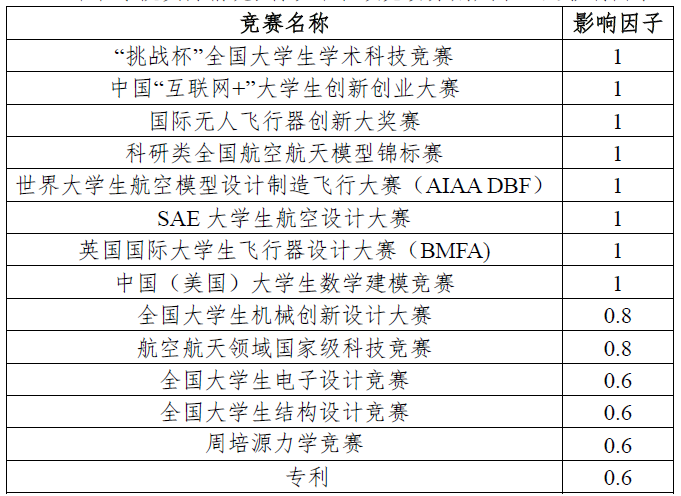 结合学院实际情况,将以下各项竞赛分别赋予一定影响因子:
